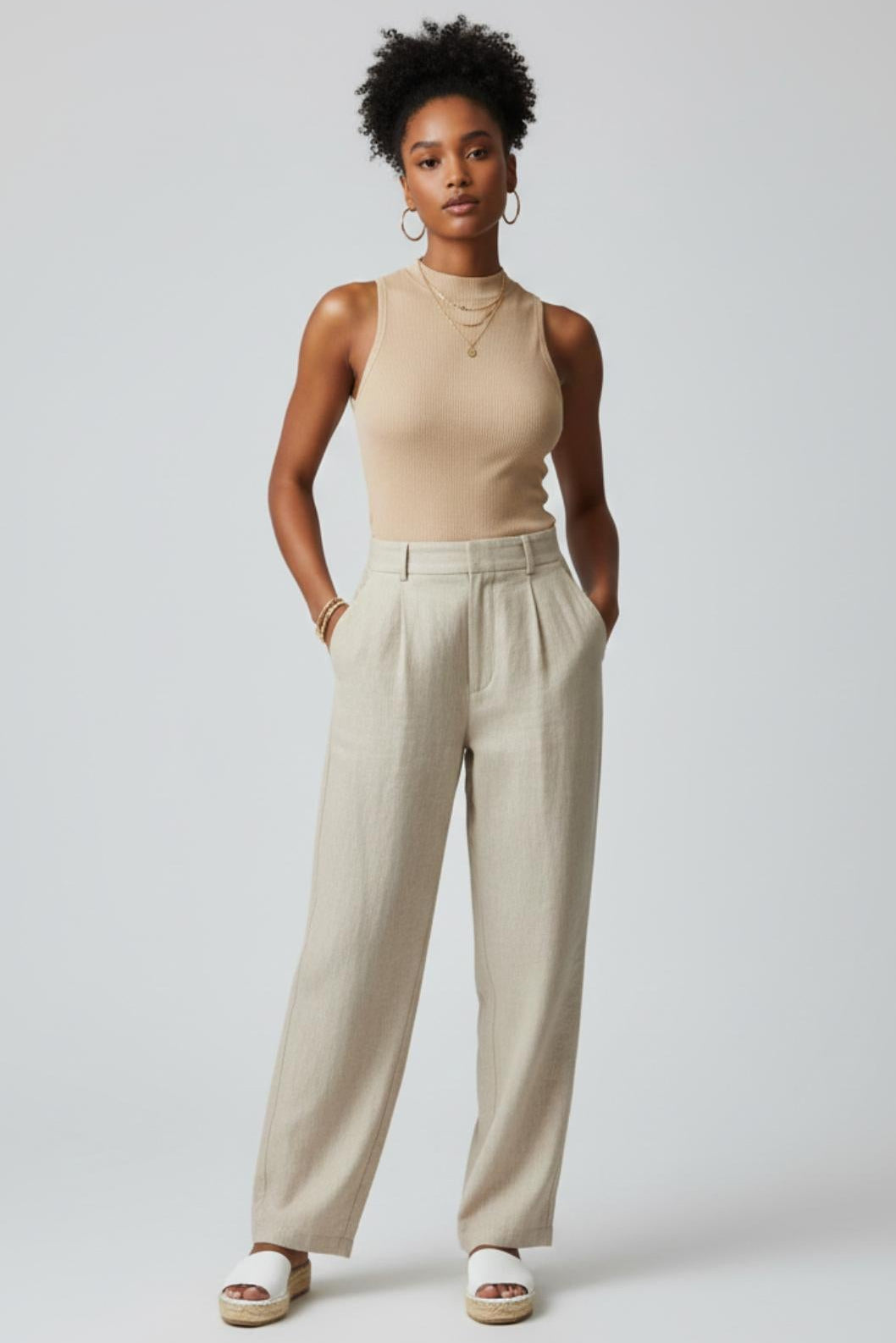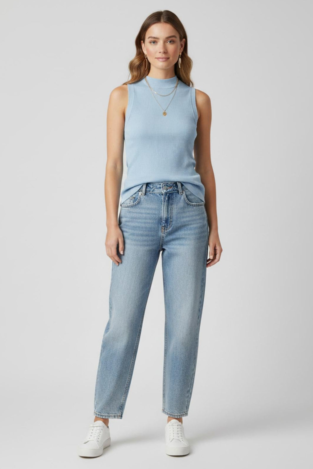 ناعم ومريح، هذا التوب بدون أكمام بياقة عالية مثالي للاستخدام اليومي. تصميمه الأنيق يجعل من السهل تنسيقه مع أي إطلالة