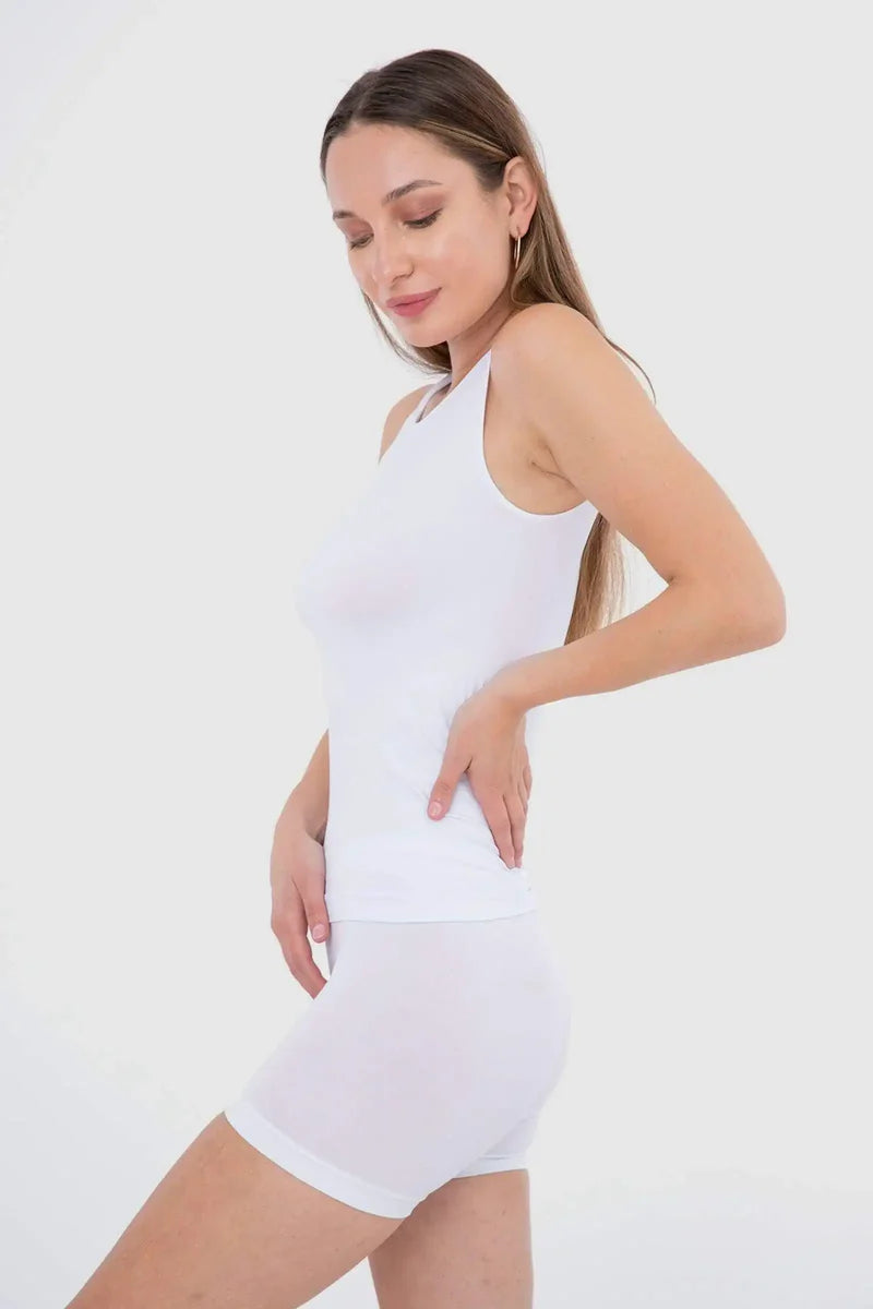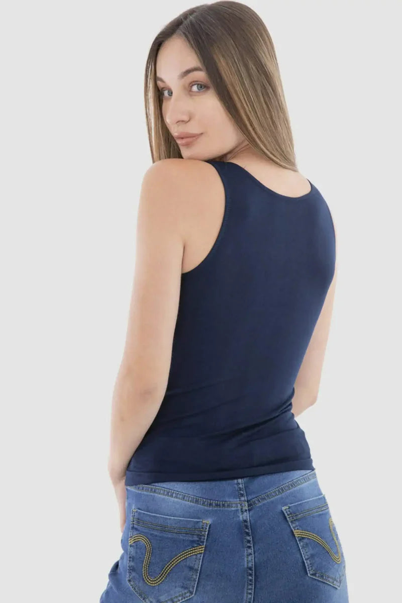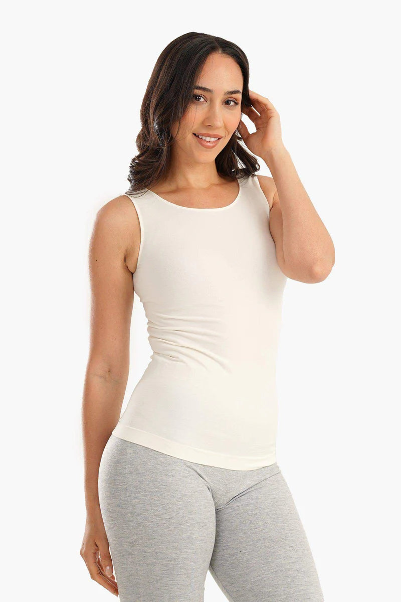 يجمع هذا التوب برقبة واسعة بين البساطة وقصة انسيابية جذابة. مصنوع من مزيج ناعم من المايكروفايبر والليكرا، ويتميز بقصة ضيقة بدون أكمام لإطلالة عصرية ونظيفة. تصميمه سهل الارتداء يجعله عمليًا ومريحًا للاستخدام اليومي.