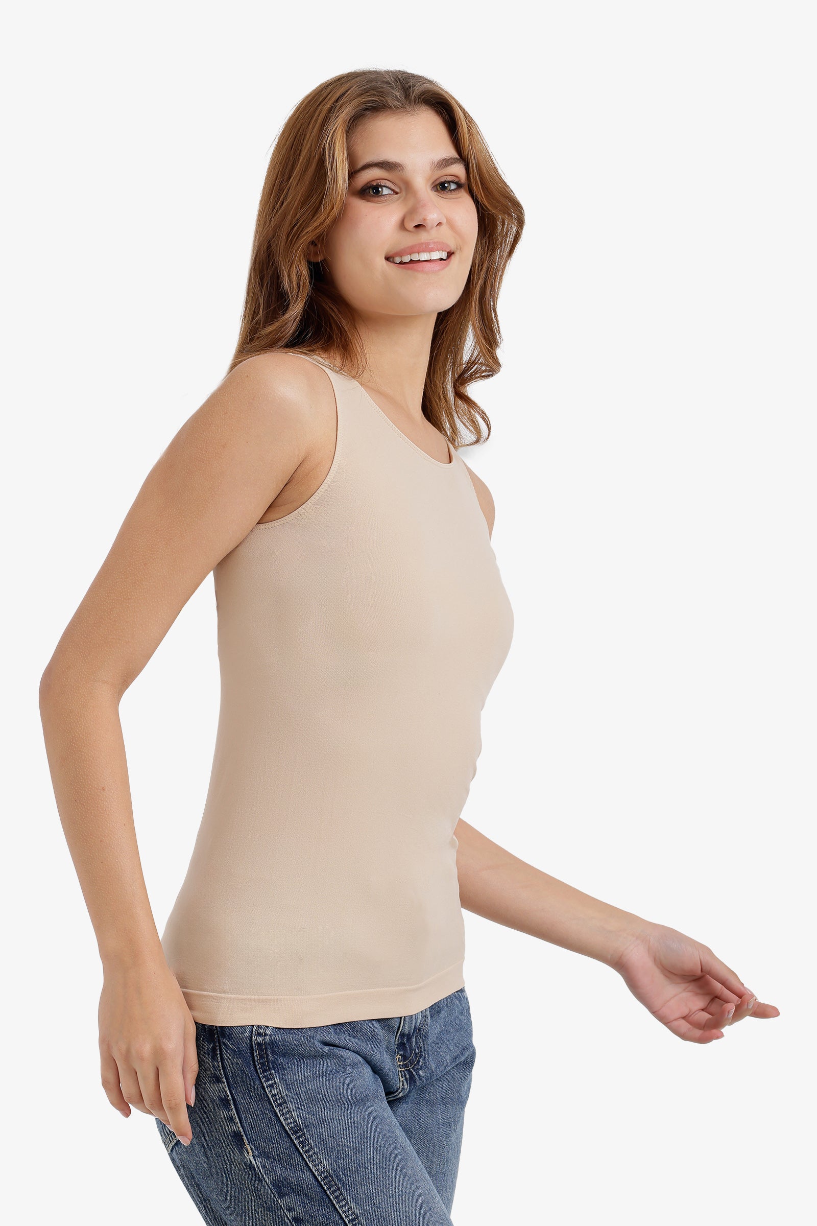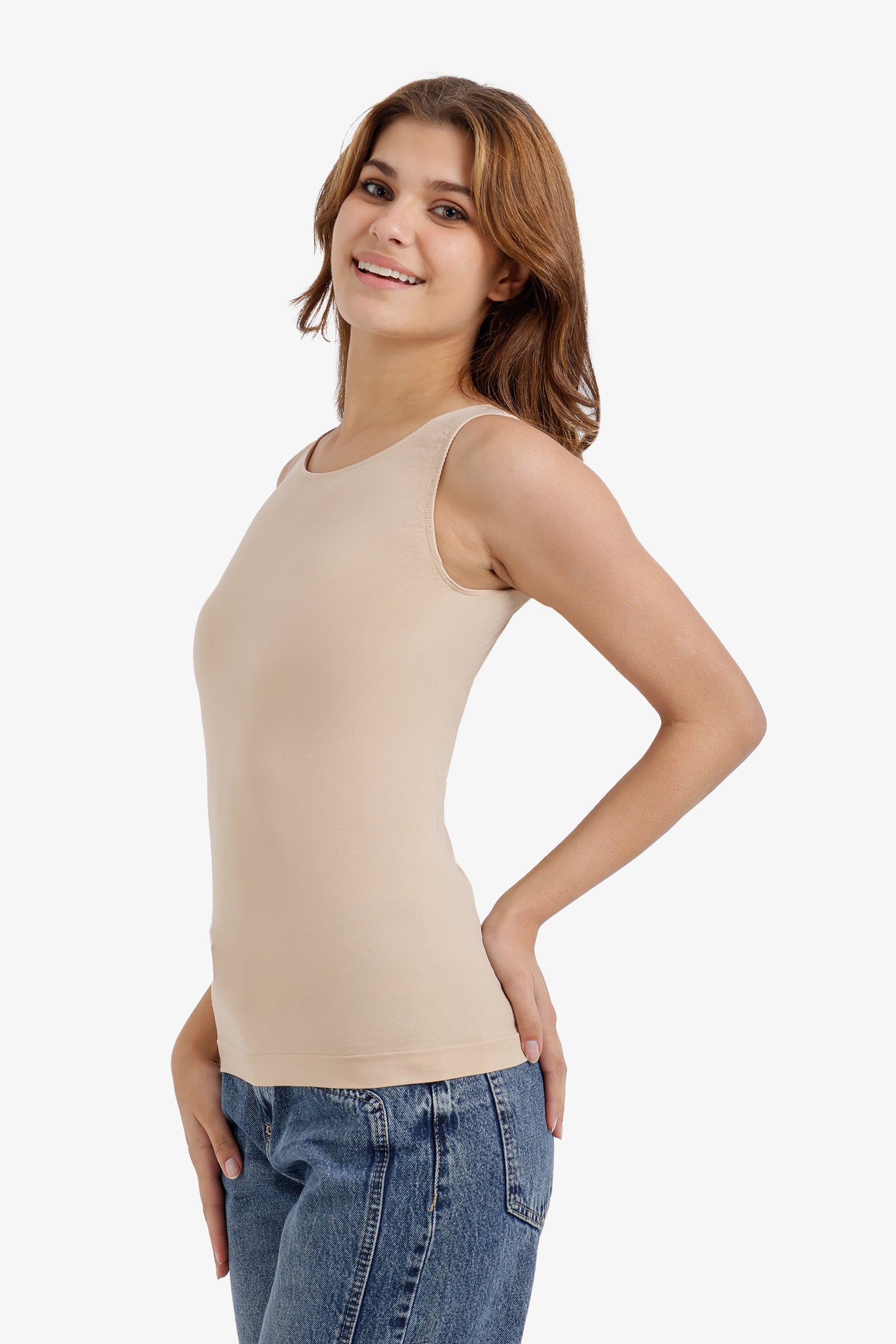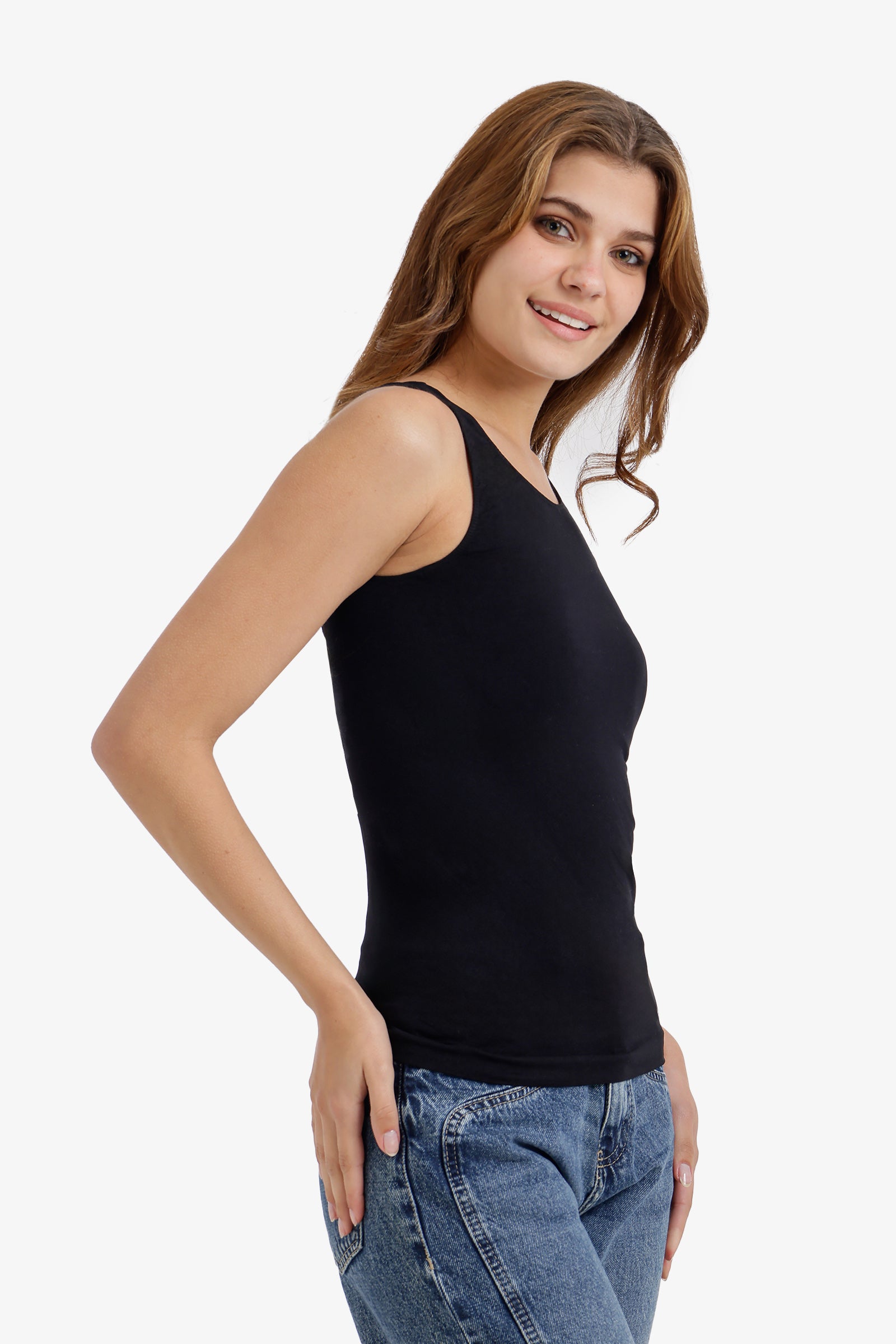 يجمع هذا التوب برقبة واسعة بين البساطة وقصة انسيابية جذابة. مصنوع من مزيج ناعم من المايكروفايبر والليكرا، ويتميز بقصة ضيقة بدون أكمام لإطلالة عصرية ونظيفة. تصميمه سهل الارتداء يجعله عمليًا ومريحًا للاستخدام اليومي.